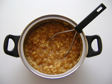 Laat ze ongeveer 10 minuten gaar koken boven laag vuur en druk ze dan tot moes.